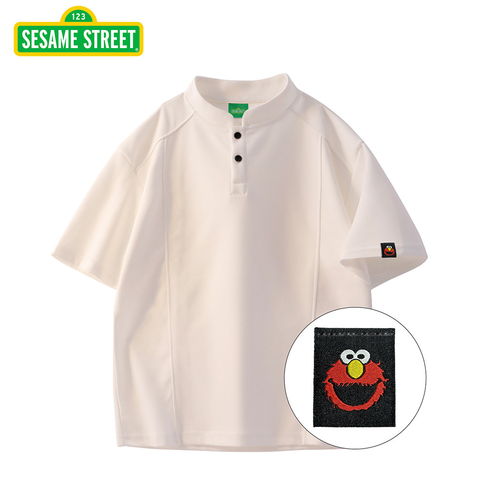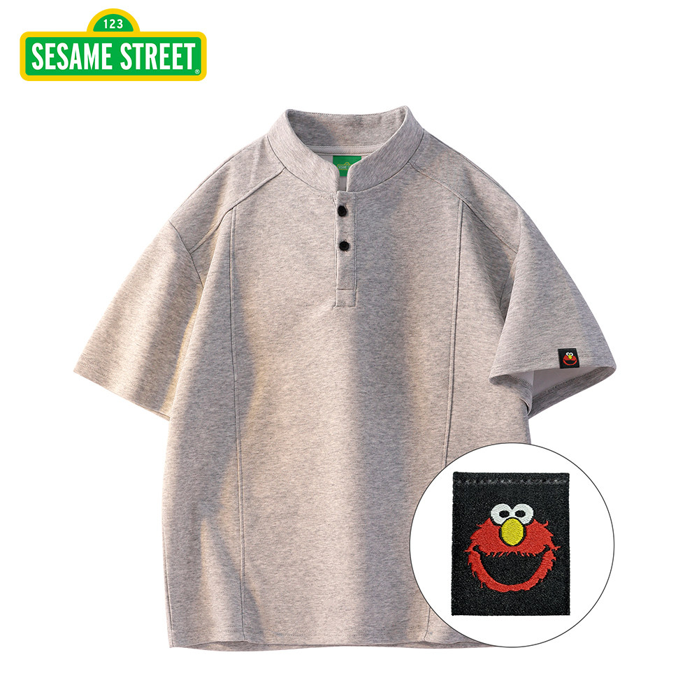 📚 芝麻街官方正品短袖t恤男夏季2026新款立领宽松衣服百搭上衣体恤