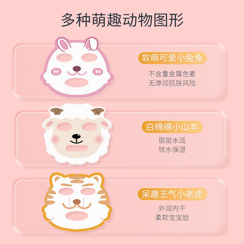 📚 小动物造型儿童面膜柔软亲肤贴合脸型不闷肤保湿滋润改善皮肤干燥