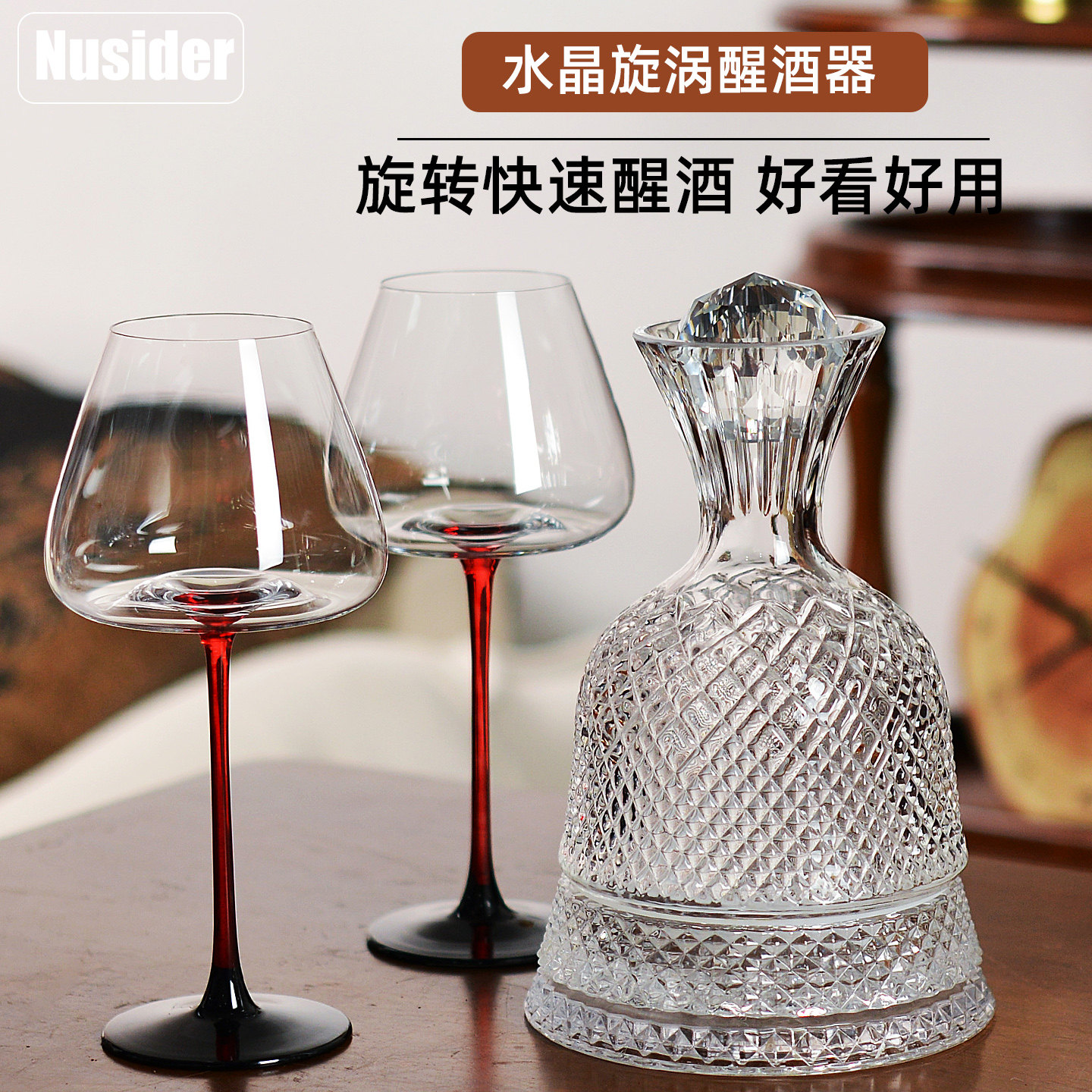📚 高档水晶旋涡红酒醒酒器套装家用红酒杯分酒壶旋转酒具高级感轻奢