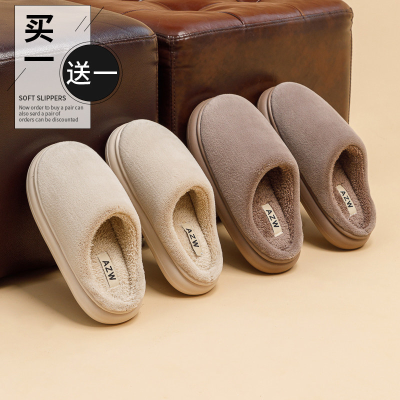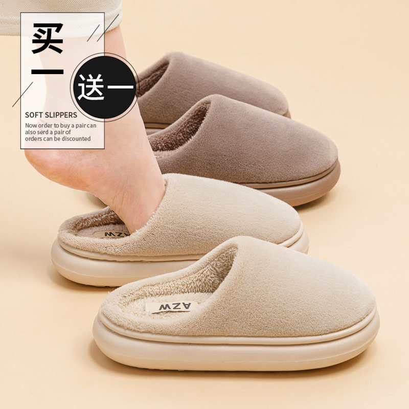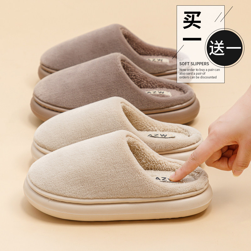 📚 买一送一棉拖鞋女款秋冬季情侣室内家居毛绒拖鞋家用男士保暖厚底