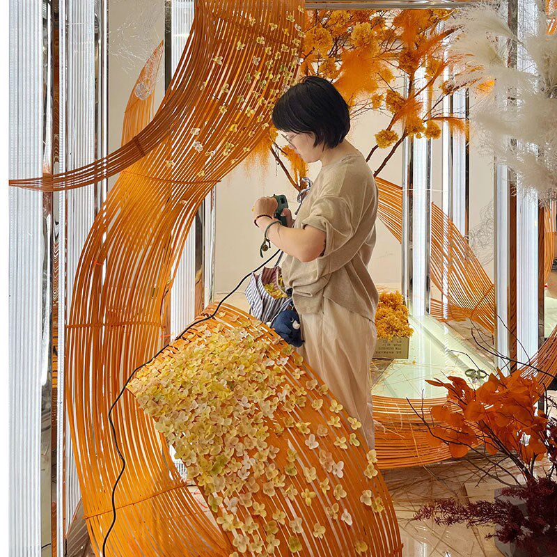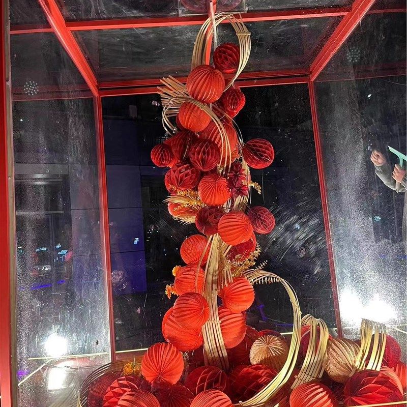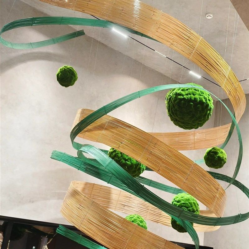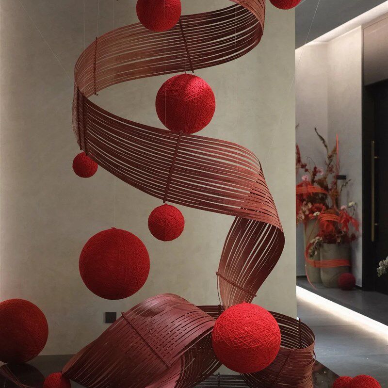 📚 大型竹艺术装置竹编花艺造景中国红空间布置吊饰竹排青竹皮竹蔑条
