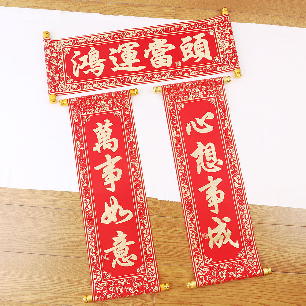 📚 新年对联小横幅马年大吉新年快乐红色手持挂联手拿祝福卷轴舞台表演道具年会手举小横幅励志标语定制平安喜乐