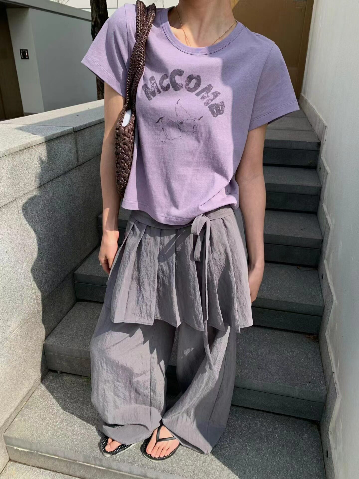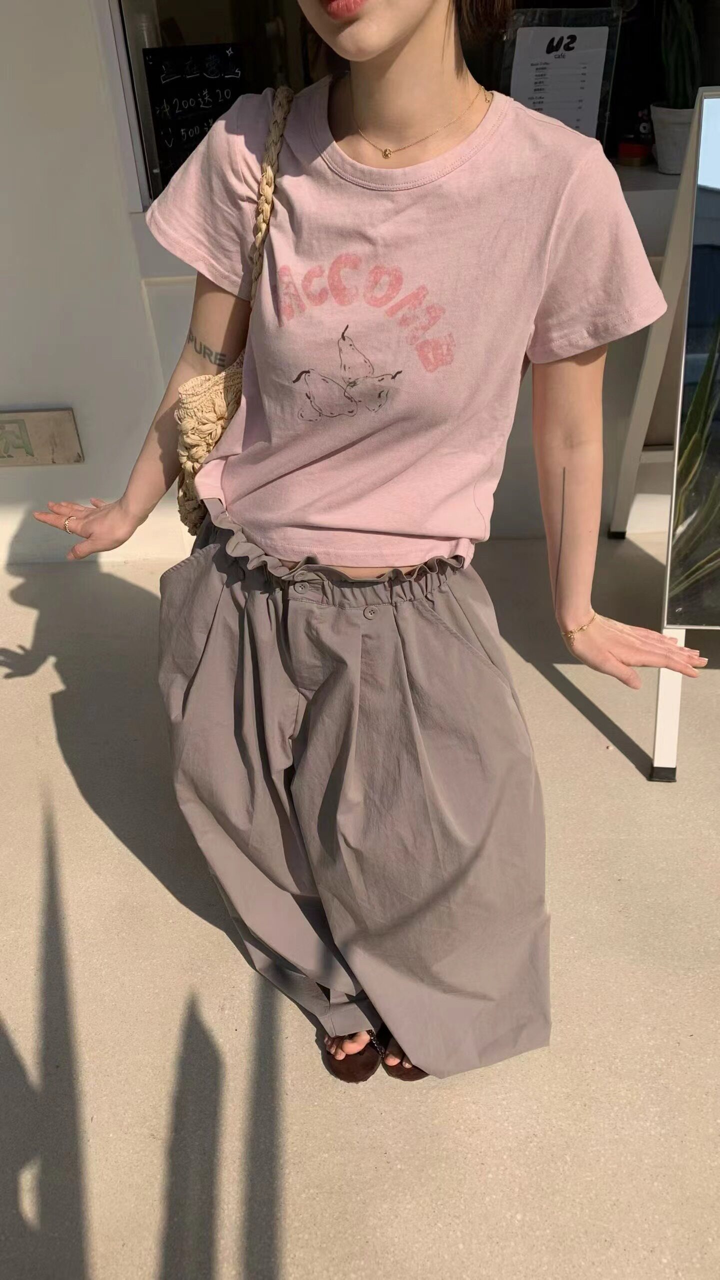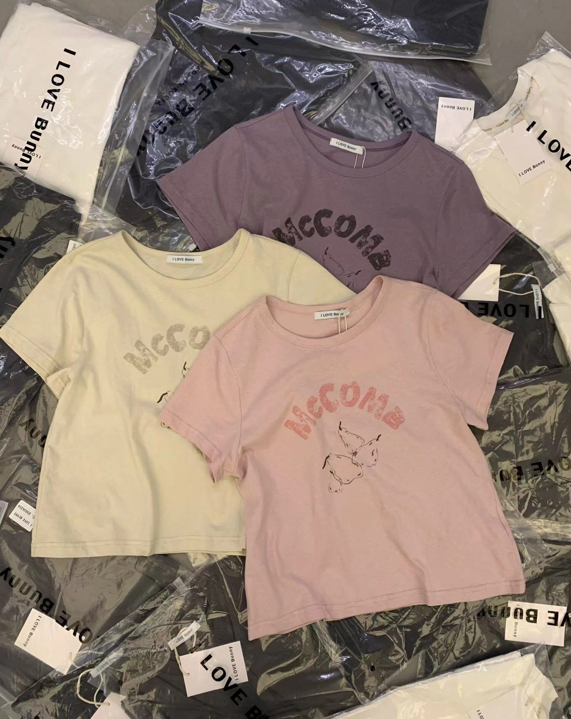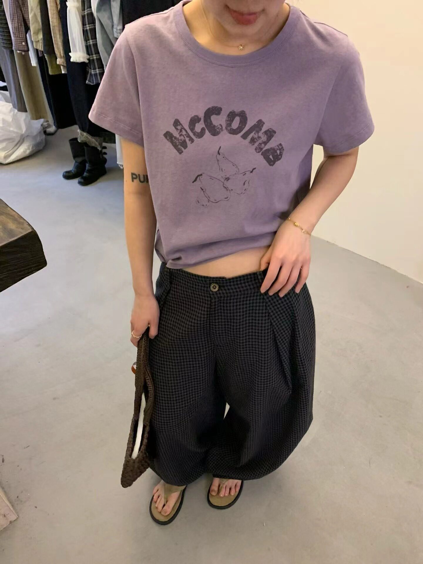 📚 甜梨软糖!LB 韩系做旧字母梨子印花圆领短袖T恤宽松百搭短款上衣