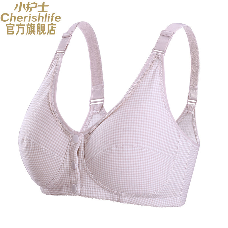 📚 小护士无钢圈文胸中老年棉质大码内衣春夏格纹前扣妈妈背心式内衣