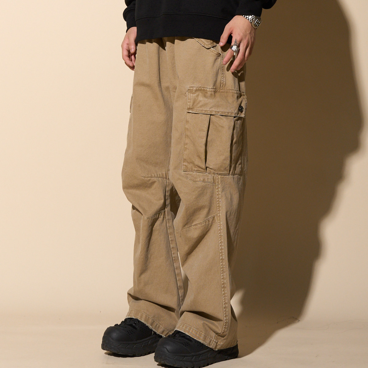 📚 LOADMIND水洗做旧美式工装裤休闲复古裤子男宽松直筒多口袋长裤潮