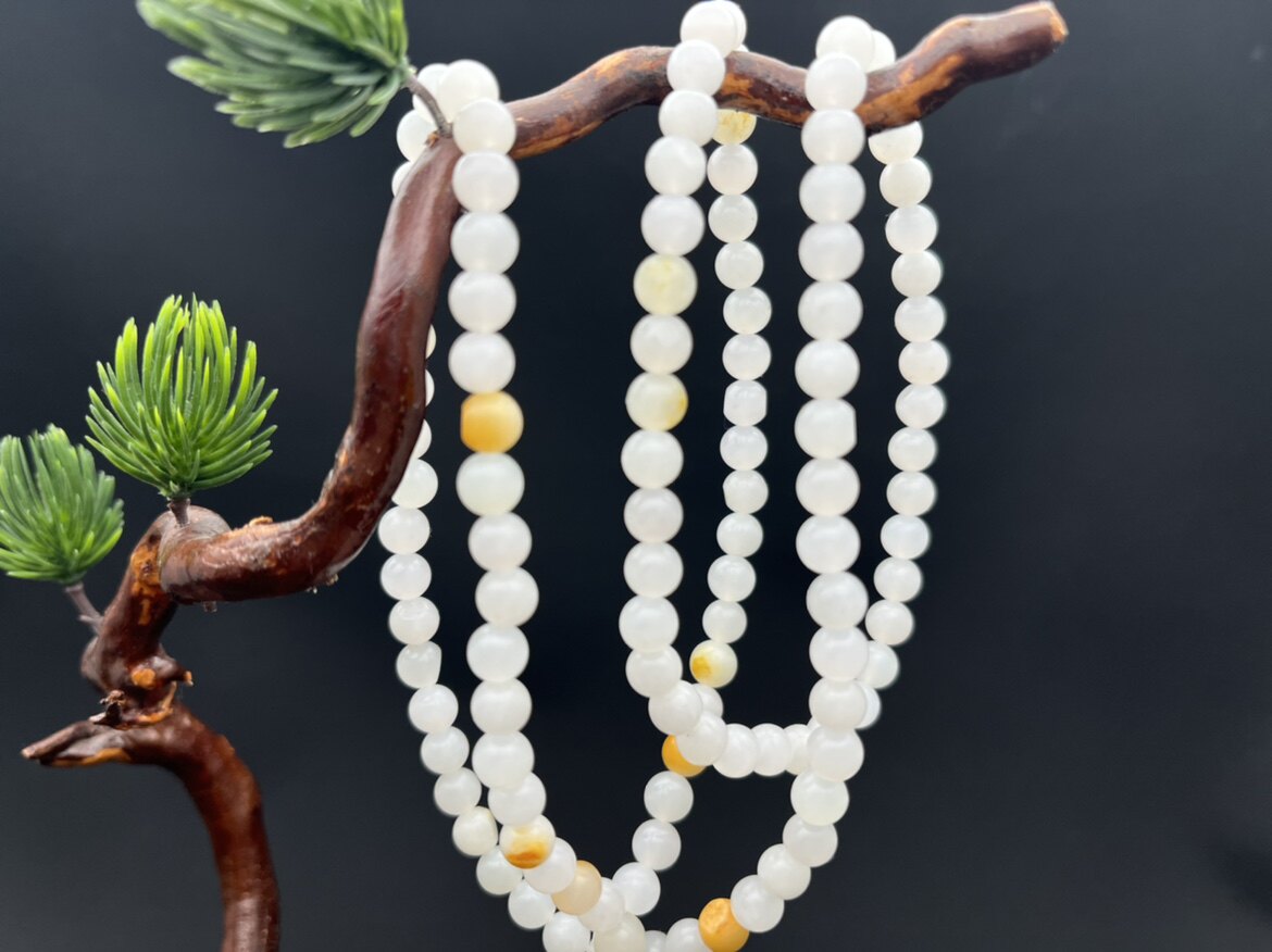 📚 新疆和田玉籽料108颗佛珠6毫米珠子天然黄沁皮项链手链手串男女款
