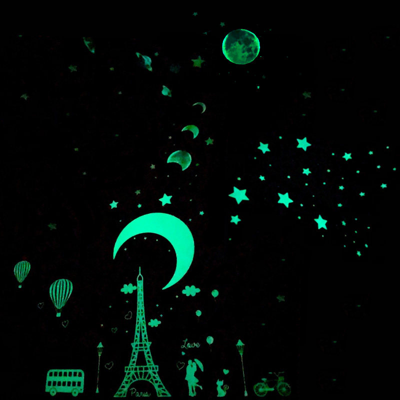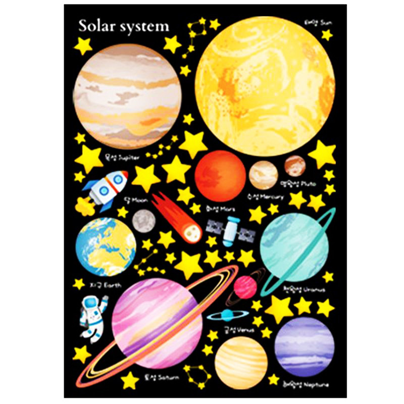 📚 进口儿童房夜光墙/贴宇宙银河太阳系科普图/画星球星星荧光贴纸