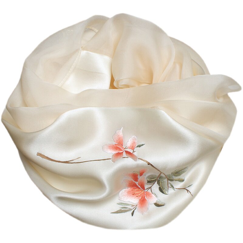 📚 春秋新百搭白色真丝防晒轻薄纱滩巾刺绣围巾女桑蚕丝长巾空调披肩