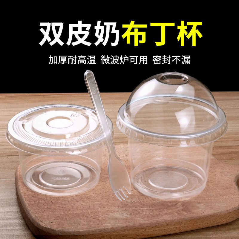 📚 双皮奶布丁杯一次性带盖塑料果冻杯子耐高温250汤杯配盖商用整箱