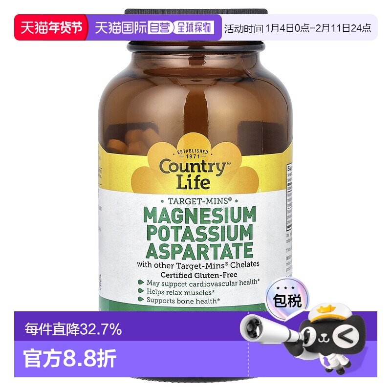 📚 香港直发country life天冬氨酸镁钾营养片180片