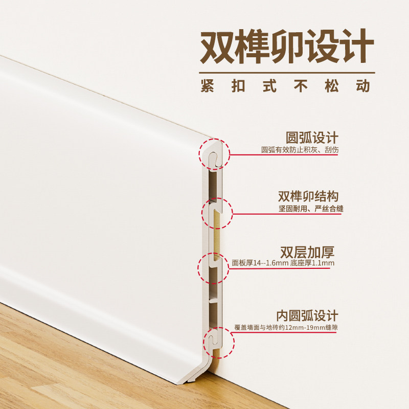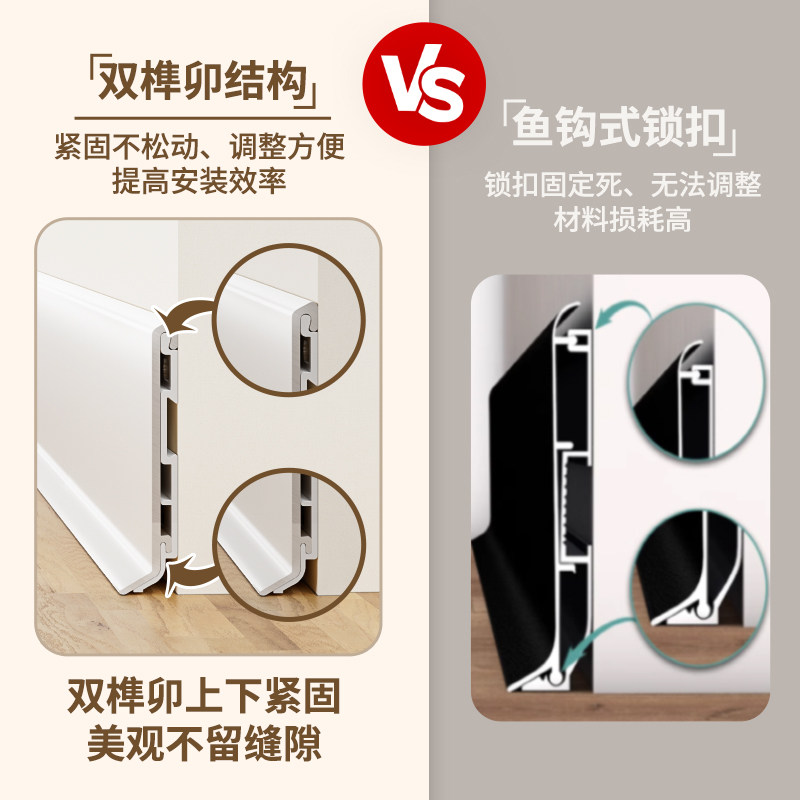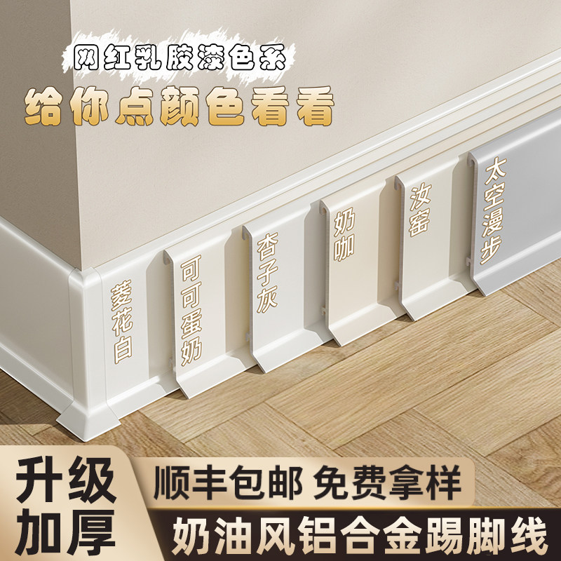 📚 新款奶油风铝合金踢脚线菱花白杏子灰6cm不锈钢金属地脚线收边条