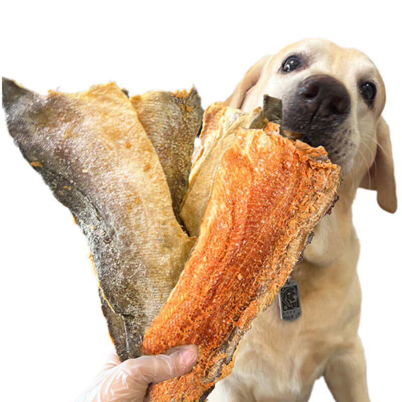 📚 冻干带肉三文鱼皮宠物零食狗狗磨牙洁齿补钙营养幼犬大狗奖励肉干