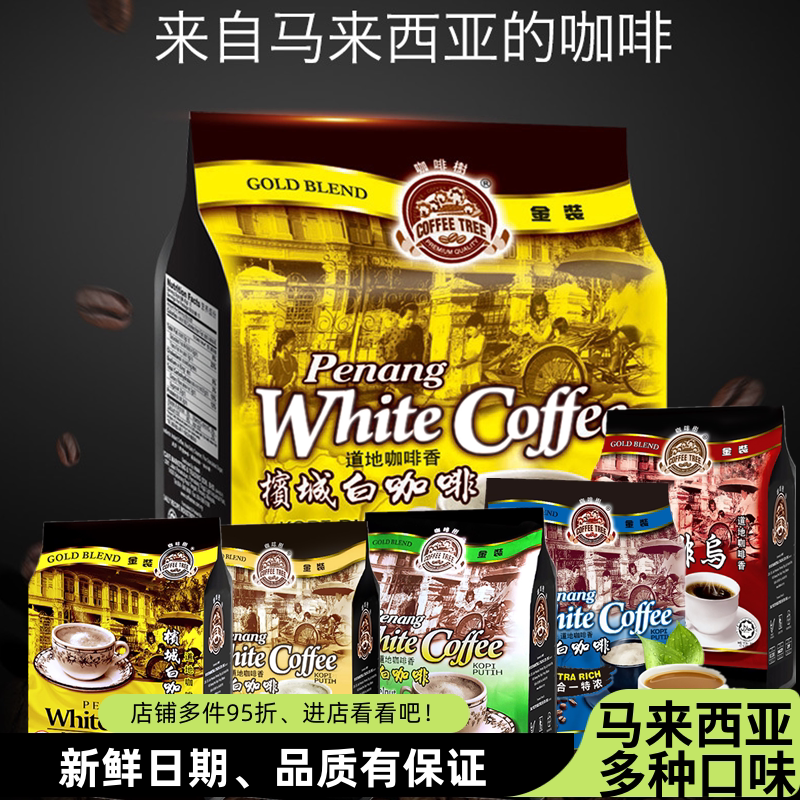 📚 马来西亚进口槟城咖啡树原味特浓白咖啡三合一速溶黑咖啡600g冲饮