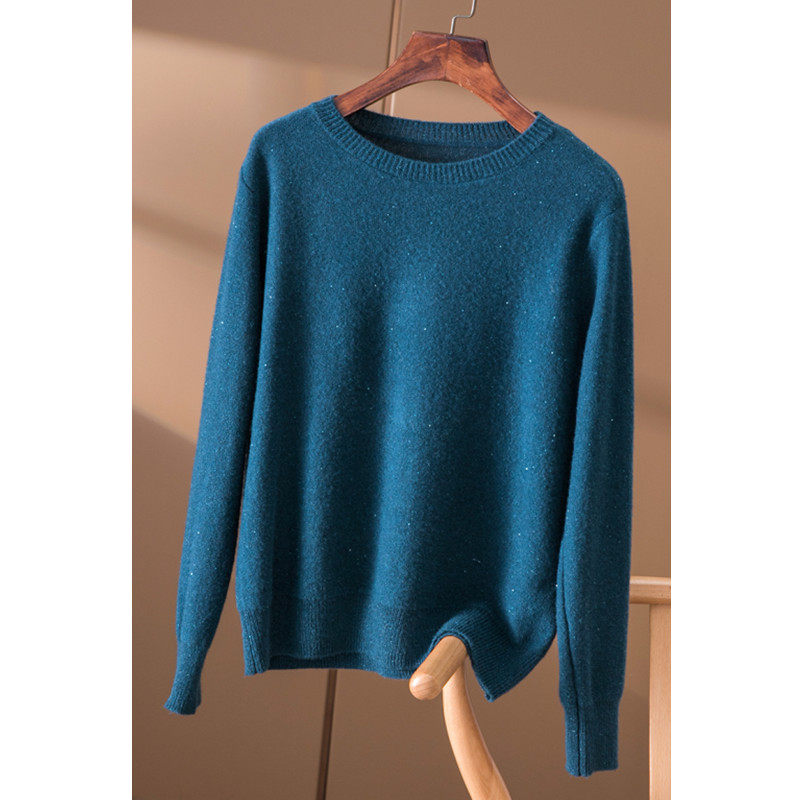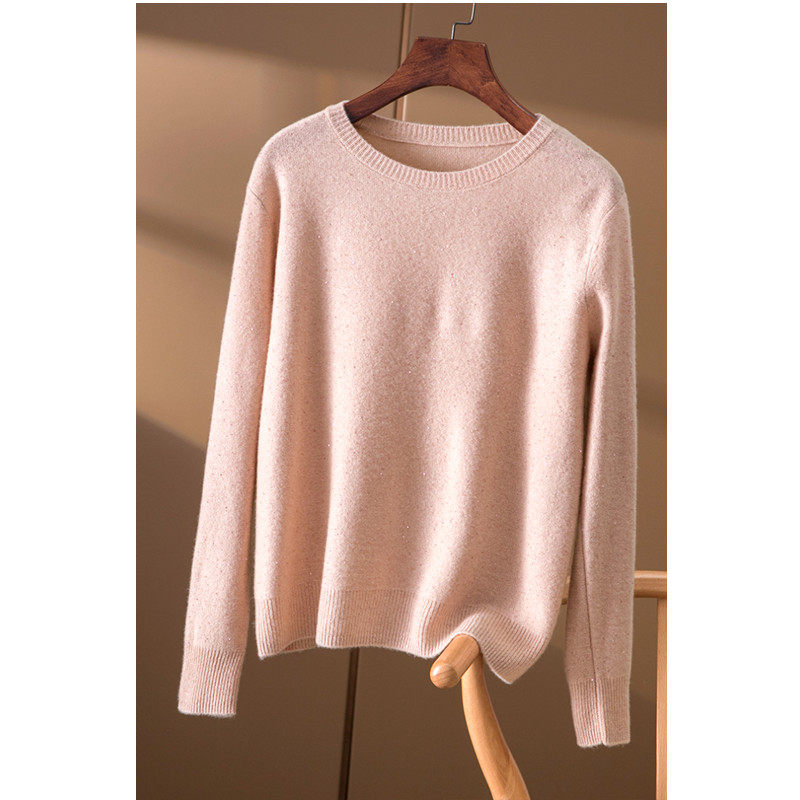 📚 秋冬羊绒衫女圆领金丝针织毛衣韩版宽松薄款长袖羊毛衫套头打底衫