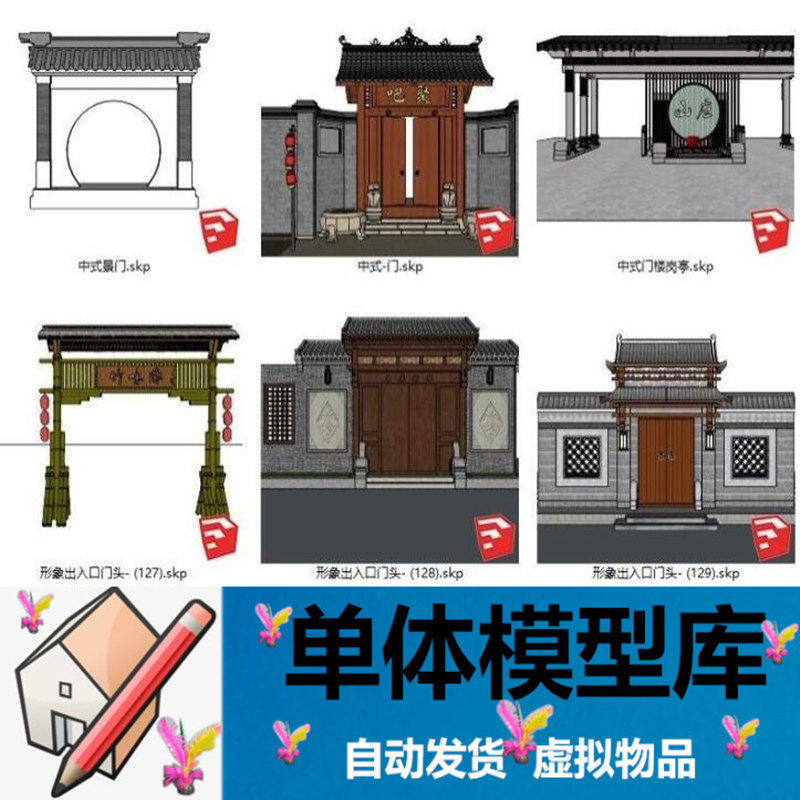 📚 新中式欧式徽派仿古门头形象大门牌坊出入口仿古建筑景观SU模型
