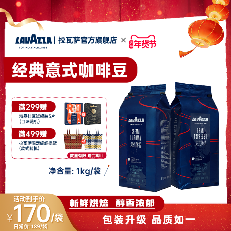 📚 LAVAZZA拉瓦萨经典意式咖啡豆中深烘1kg拼配醇香特浓新鲜烘焙商用