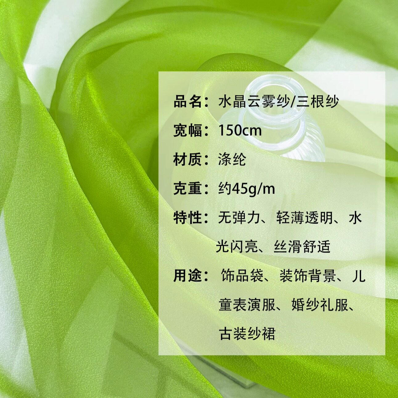 📚 高密水晶亮丝云雾纱仙女水光欧根纱舞台背景丝滑礼服设计师面料