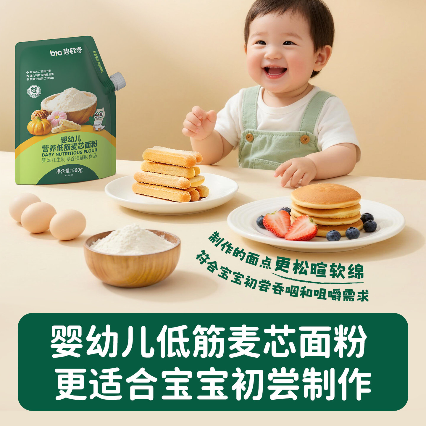 📚 碧欧奇婴儿低筋面粉烘焙专用家用小麦粉松饼粉蛋糕粉辅食胚芽米粉