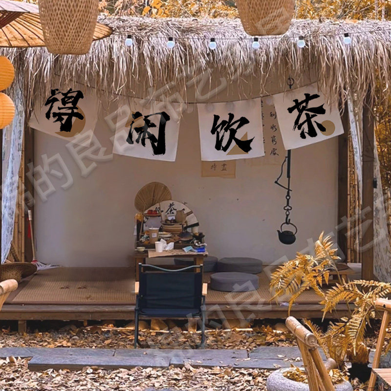 📚 小院门头氛围挂布市集摆摊店铺招牌横幅广告背景布墙面装饰布定制