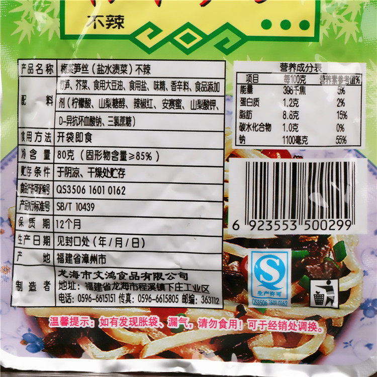 🍵尝过之后,我简直被它的美味深深种草了!每一口都能感受到福建文鸿梅菜的独特风味,笋丝鲜嫩可口,开袋即食,方便快捷。而且这款笋干榨菜咸菜咸鲜适中,口感丰富,让人回味无穷。