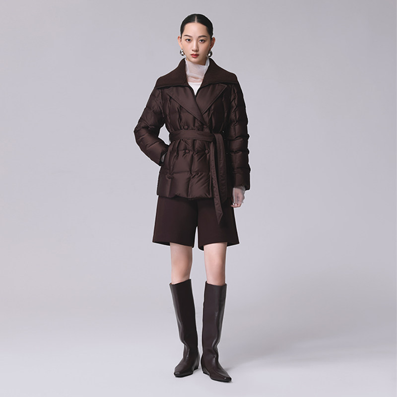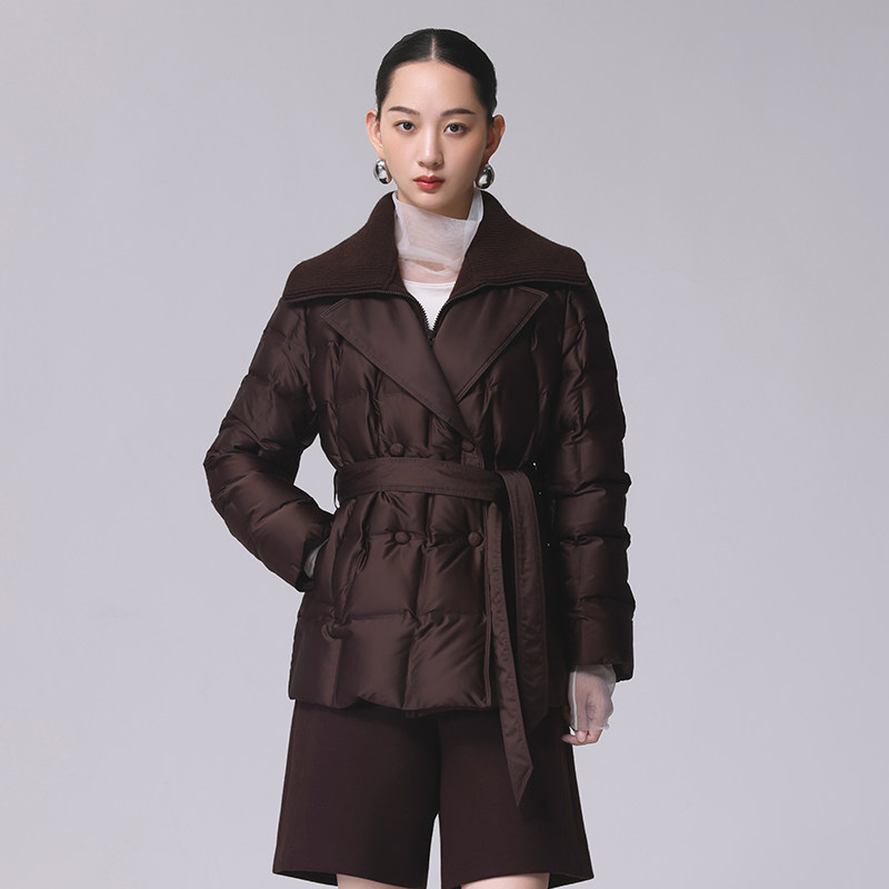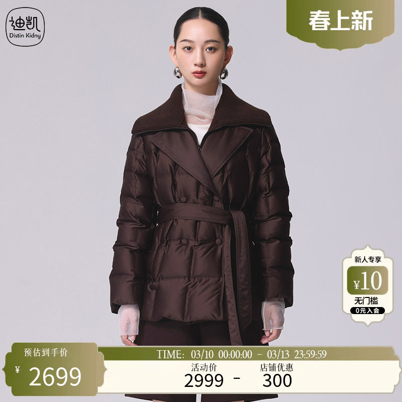 📚 Distin Kidny/迪凯翻领收腰羽绒服女中长款棕色百搭保暖外套气质