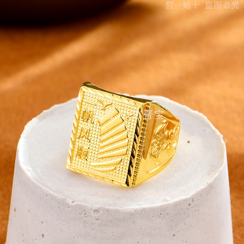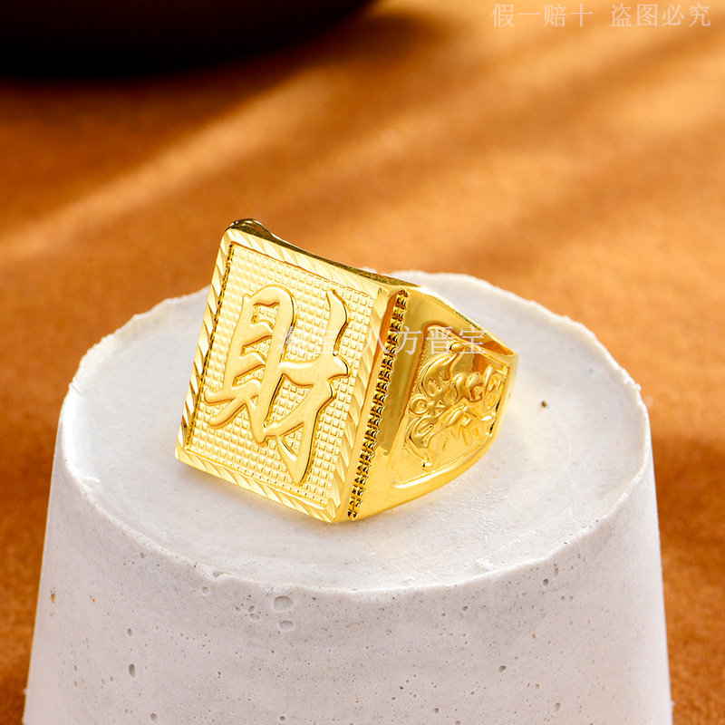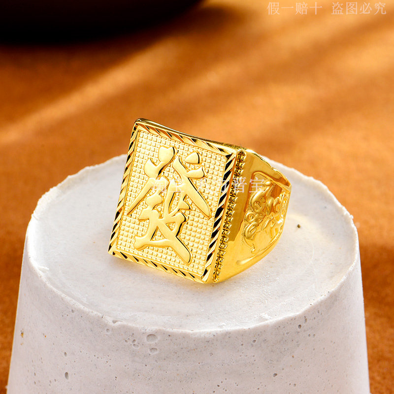 📚 黄金戒指男足金999发财福字戒子实心活口真金包银戒指送男友礼物