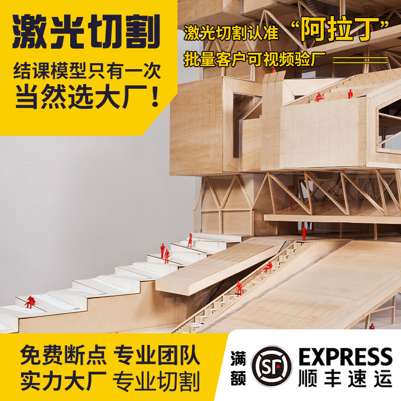 📚 激光切割椴木板雕刻建筑环艺模型亚克力卡纸航模木板加工CAD定制