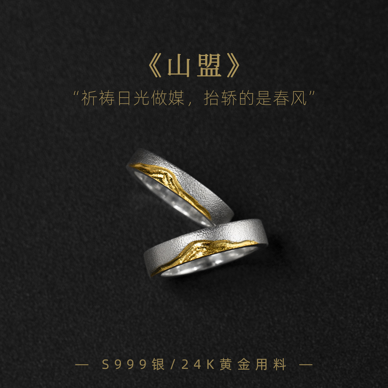 📚 四月初寻七夕礼物山盟海誓情侣对戒闭口S999镶金原创设计闭口定制