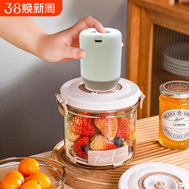📚 电动抽真空保鲜盒抽气密封罐厨房沥水储物罐大号食物盒冰箱收纳盒