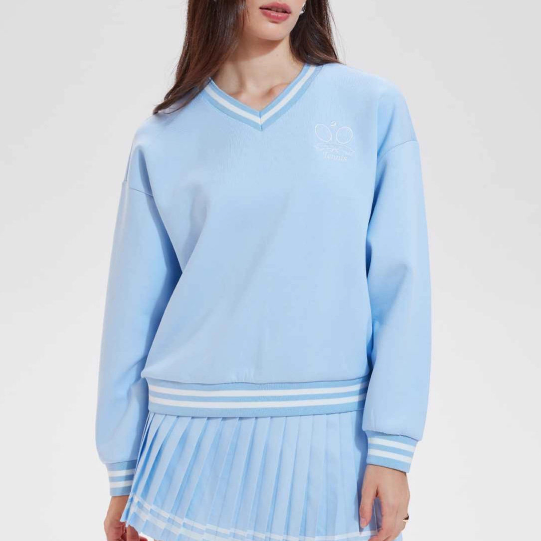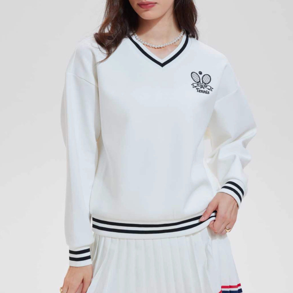 📚 高尔夫羽毛网球休闲运动T恤慵懒风宽松长袖跑步健身上衣撞色卫衣