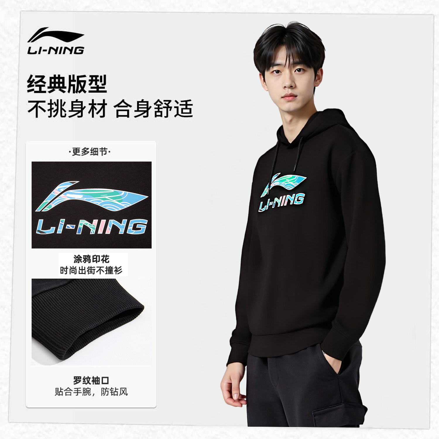 📚 李宁卫衣男子2026秋季新款休闲百搭潮流宽松舒适运动连帽套头衫