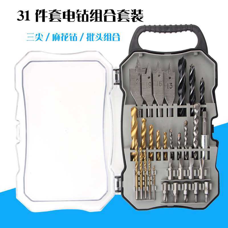📚 31件套电钻钻头组合工具电动十字批头三尖木工麻花钻建工钻头套装