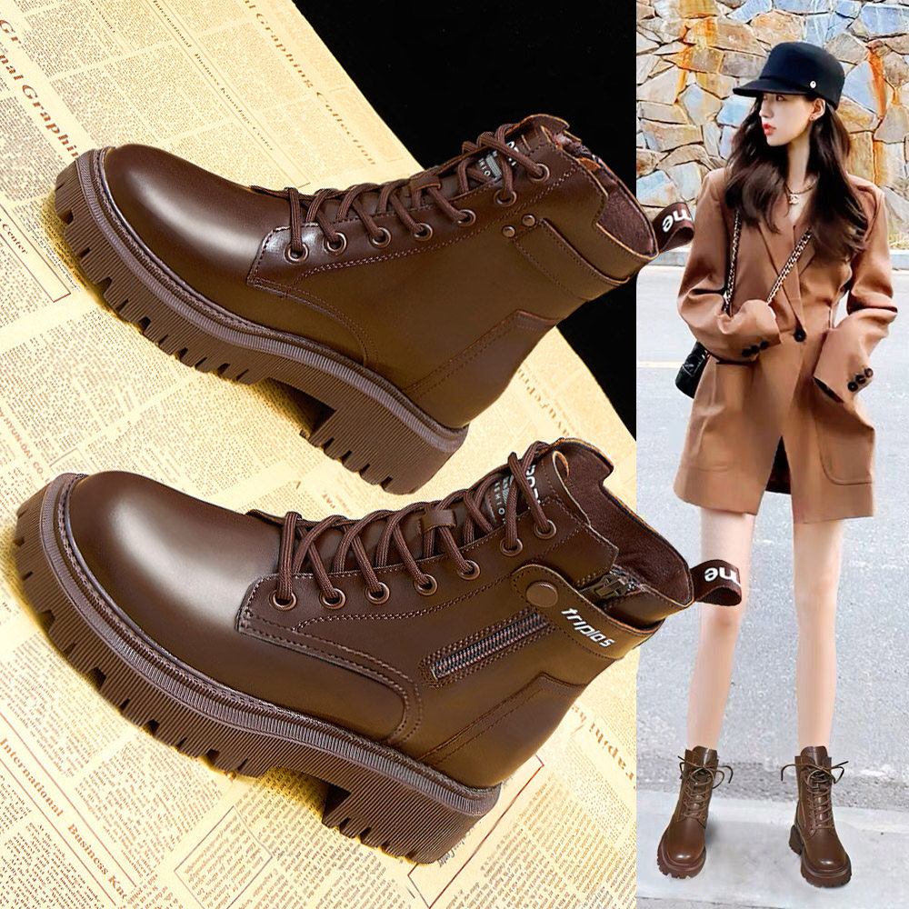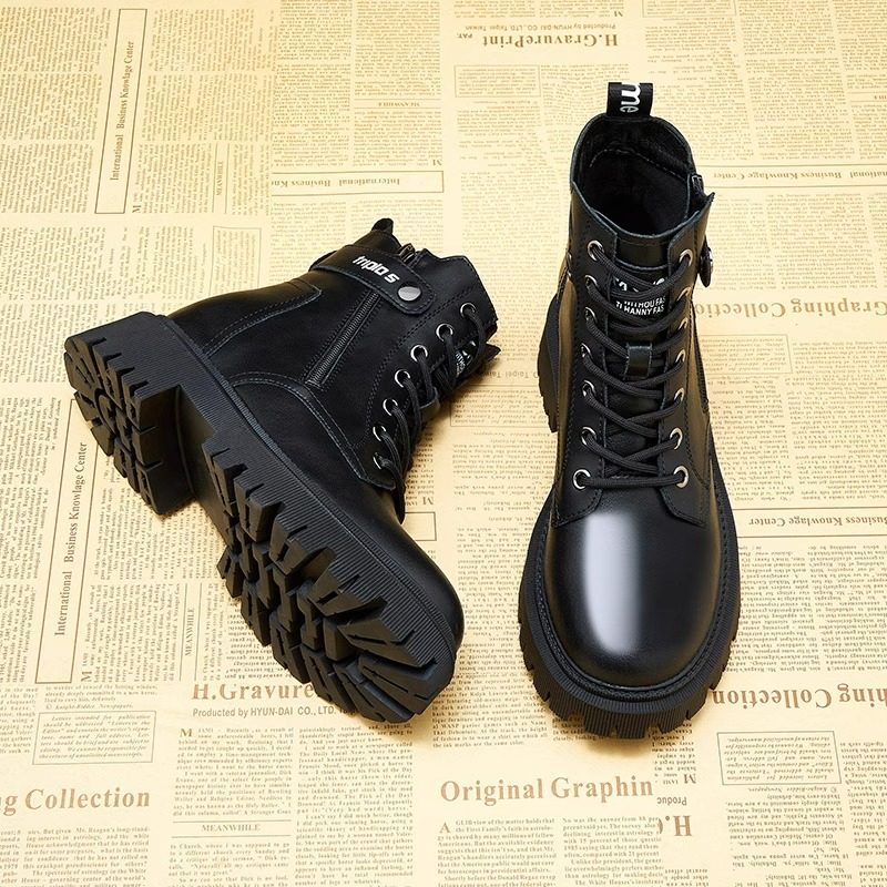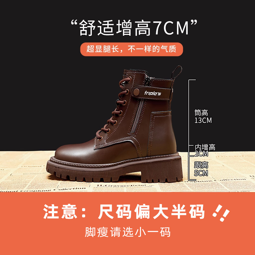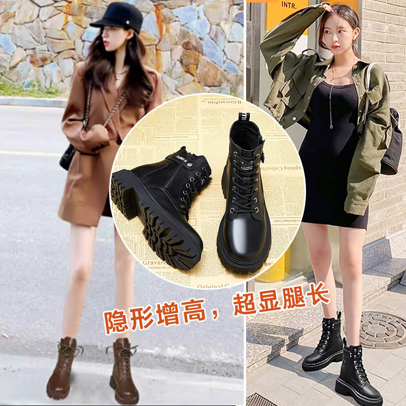 📚 真皮马丁靴女2025秋冬新款小个子英伦厚底靴子内增高短靴加绒棉鞋