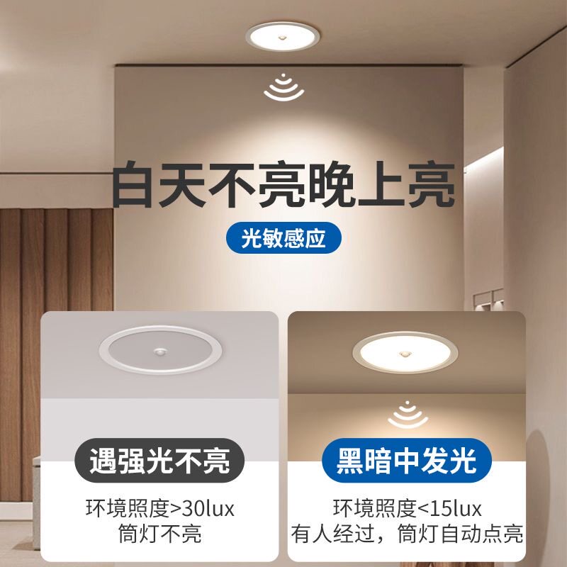 📚 LED人体感应筒灯嵌入式声光控雷达感应灯工程物业酒店走廊过道灯