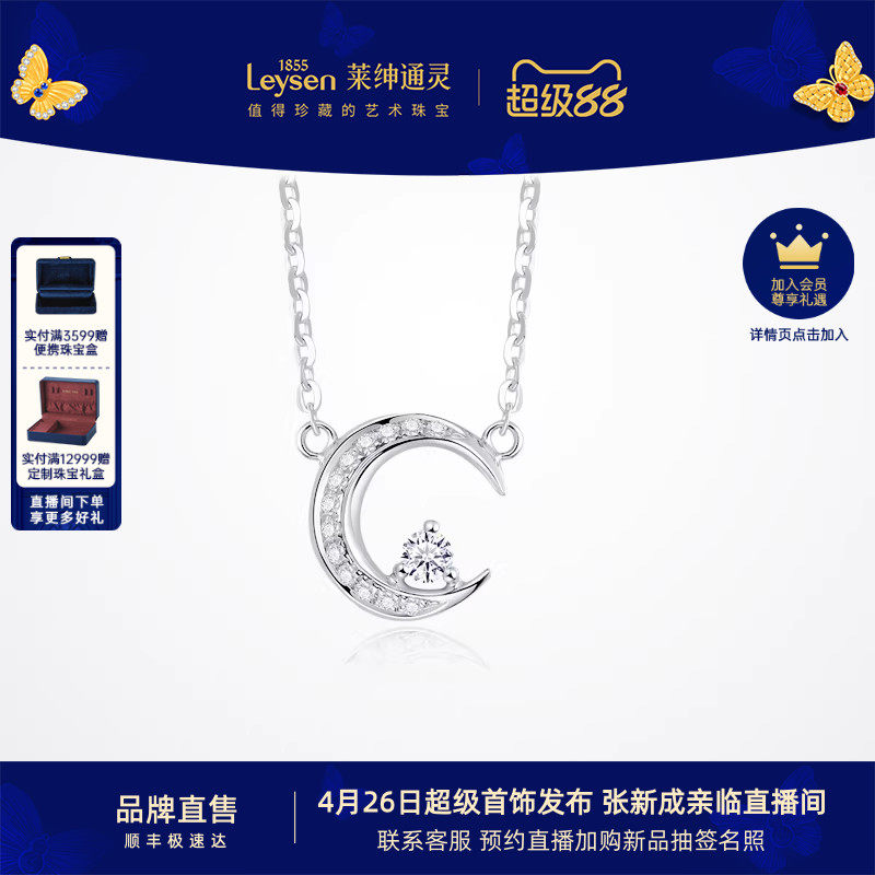 📚 莱绅通灵珠宝 星月童话 18K金钻石项链女 月亮链坠天然真钻锁骨链