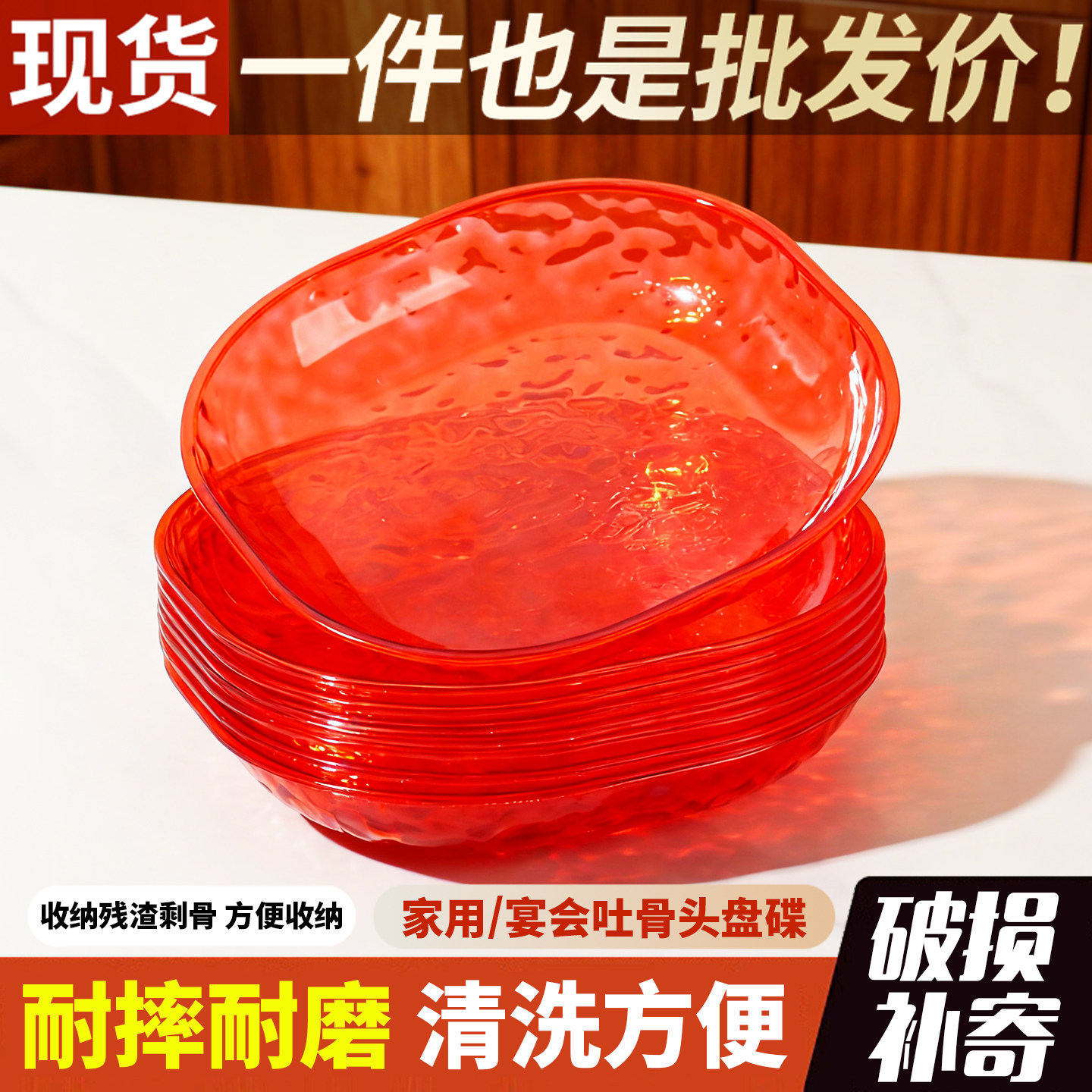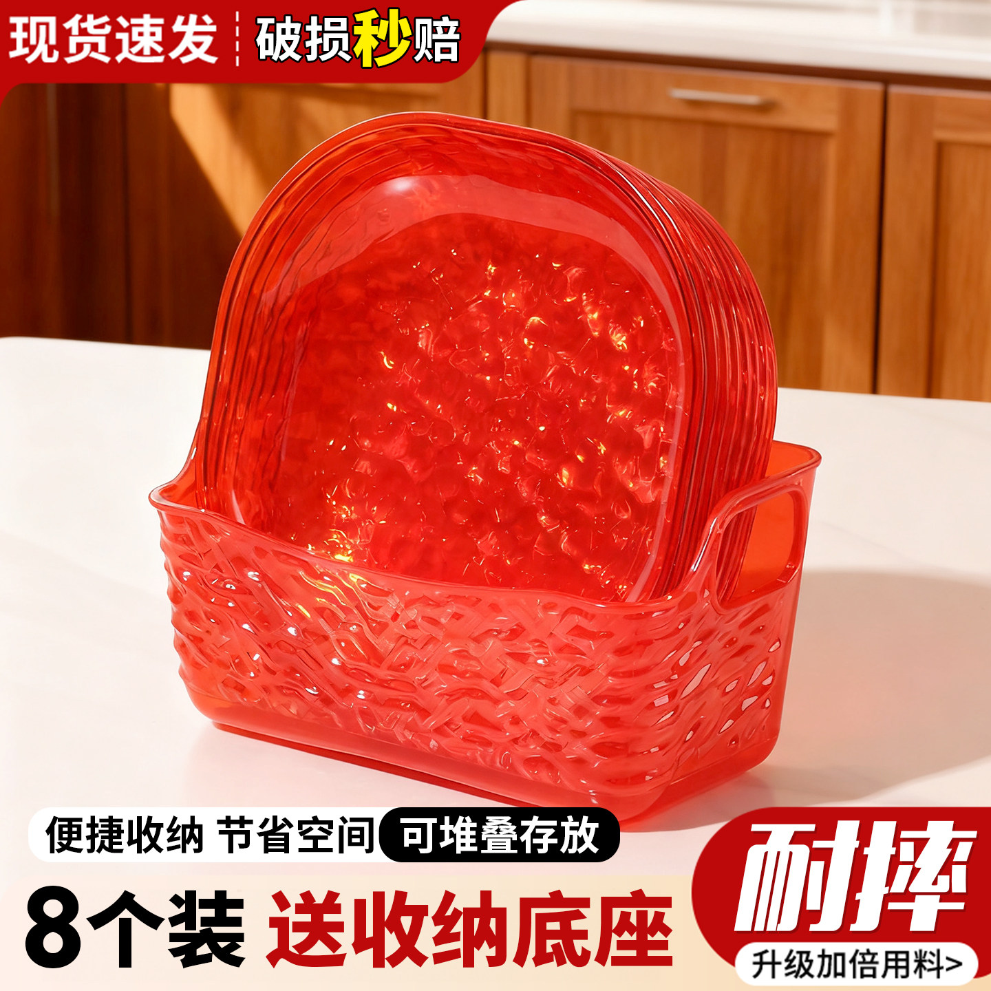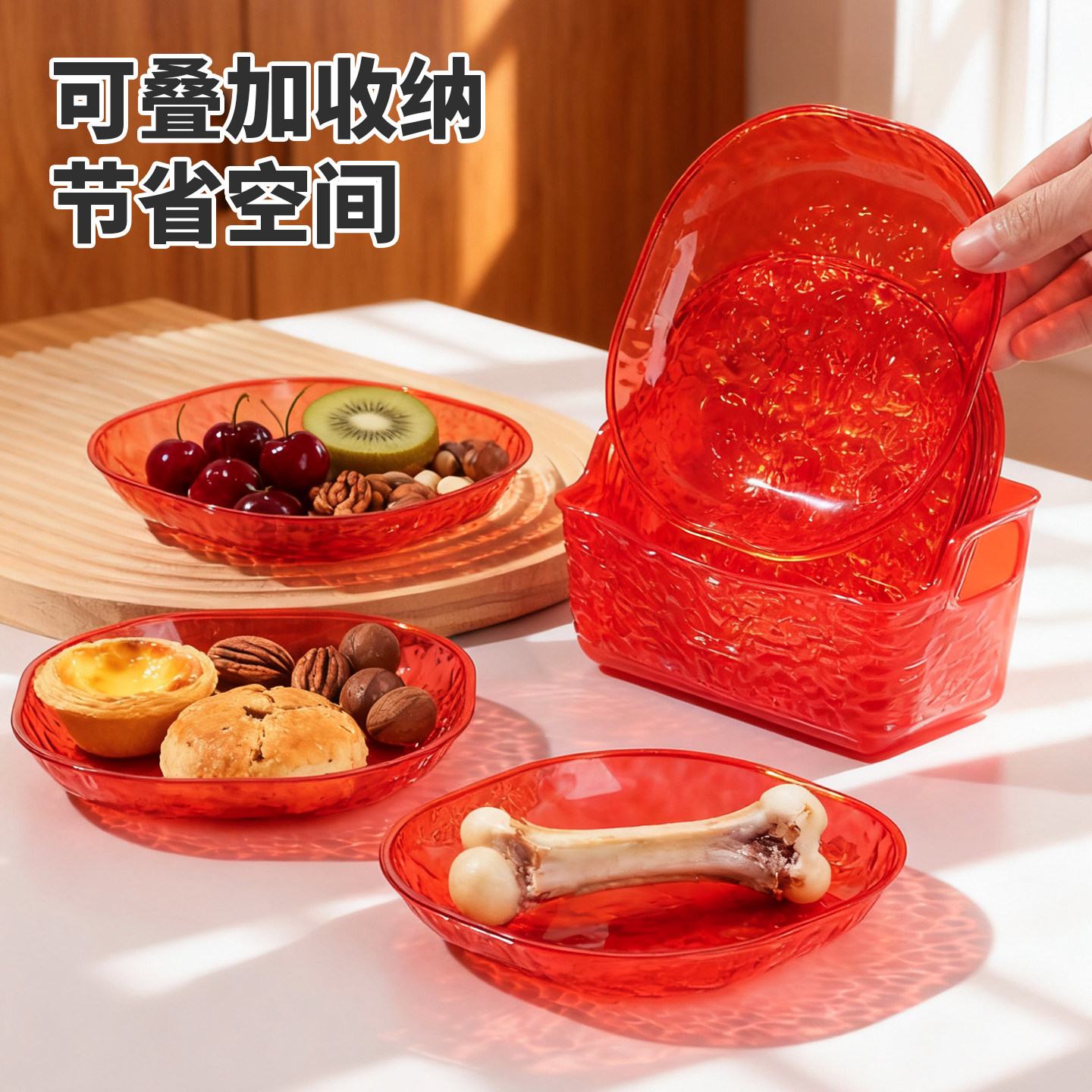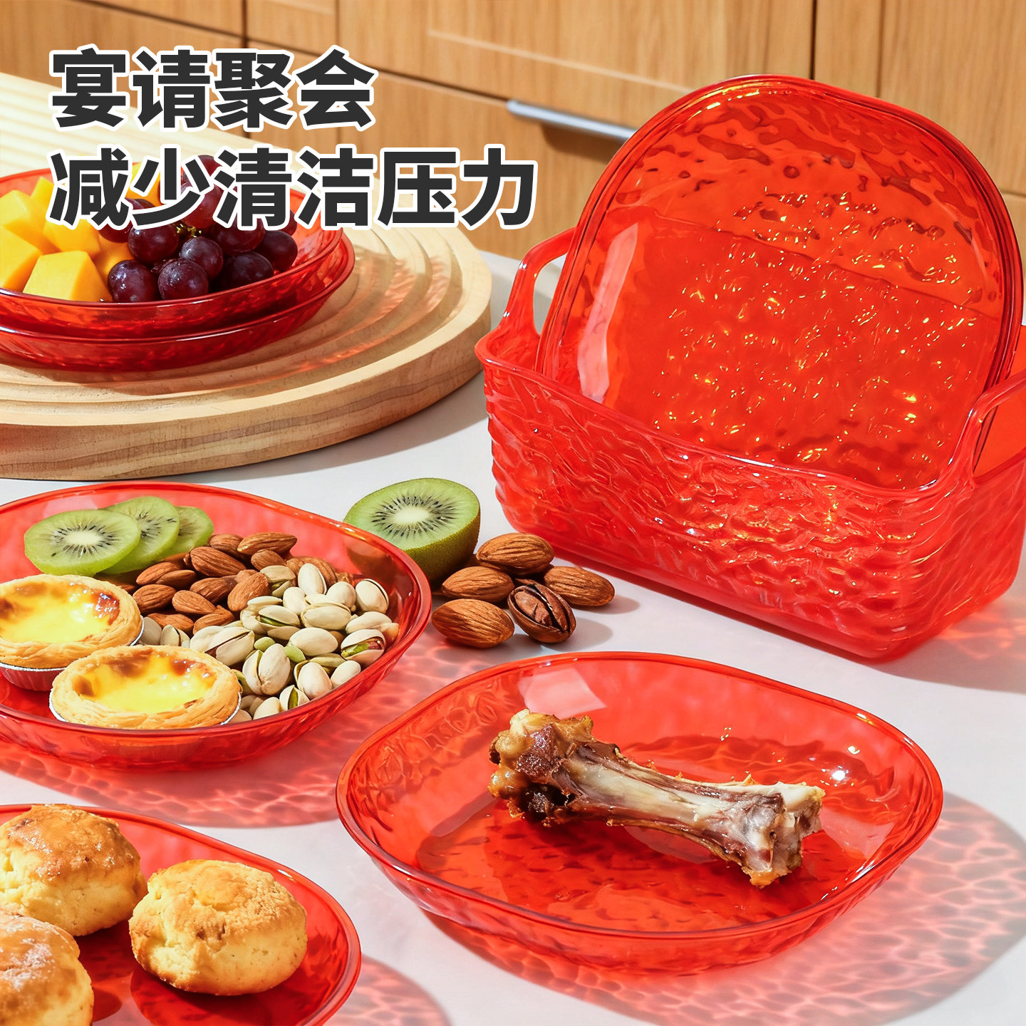 📚 过年家用骨碟红色轻奢高档冰川纹桌面垃圾盘配收纳底座茶点小盘子