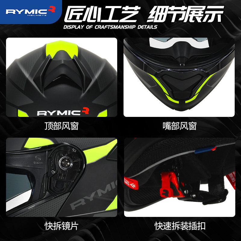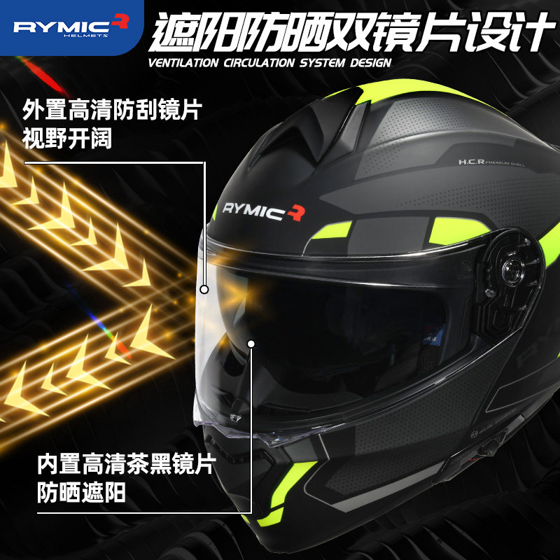 📚 车迷辰睿觅RYMIC摩托车头盔双镜片揭面盔大尾翼巡航摩旅长途全盔