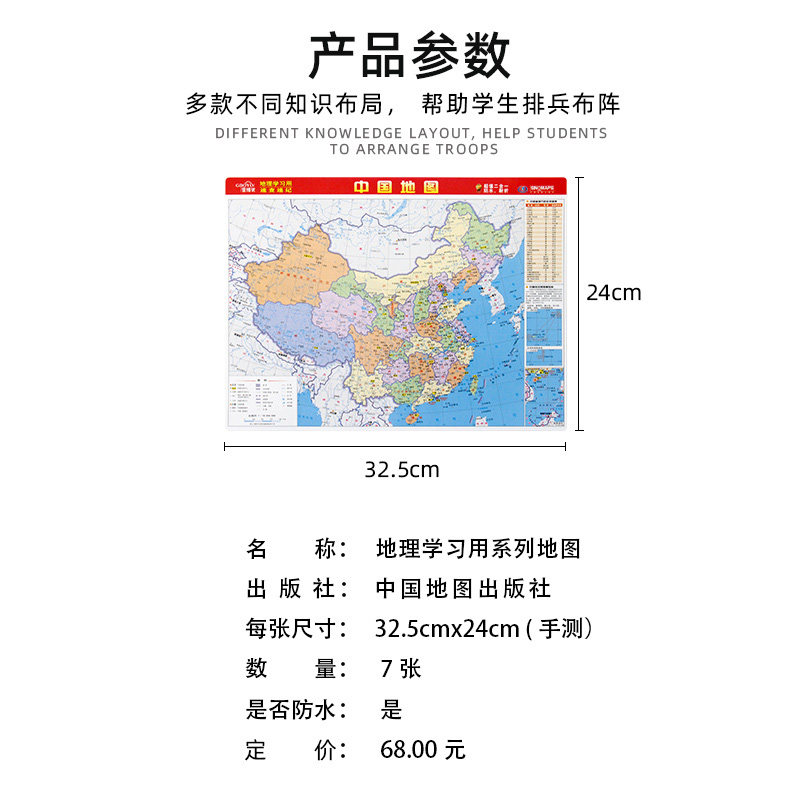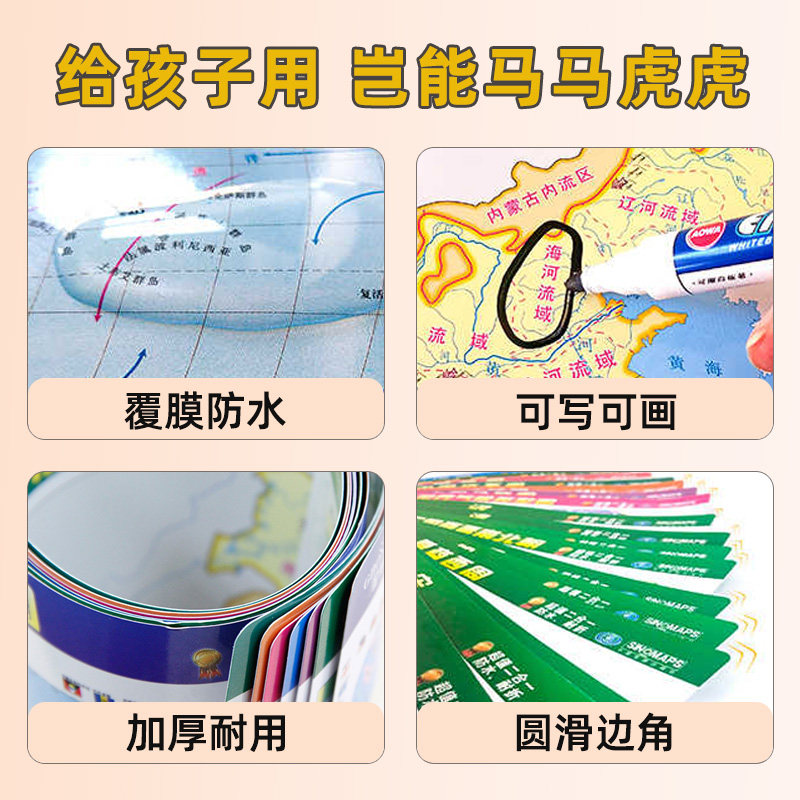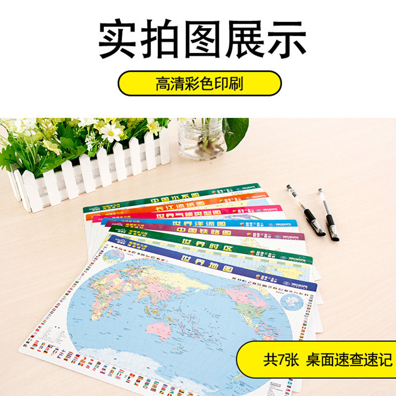 📚 【超值7张装】2024新版中学地理学习考试速记地图套装 考点全面重点突出桌面迷你地图 世界地图中国地图洋流图长江黄河流域图