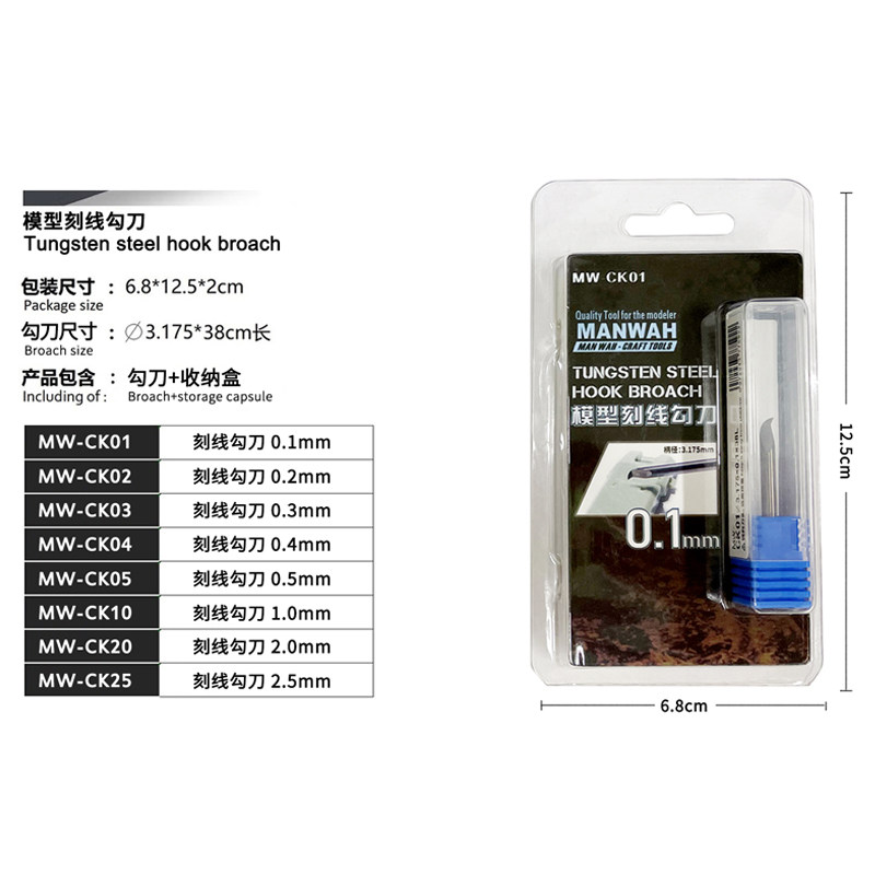 📚 文华模型 文华工具 MW-CK 全段钨钢刻线勾刀 雕刻刀 0.1~2.5mm