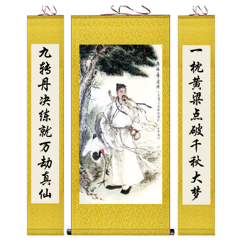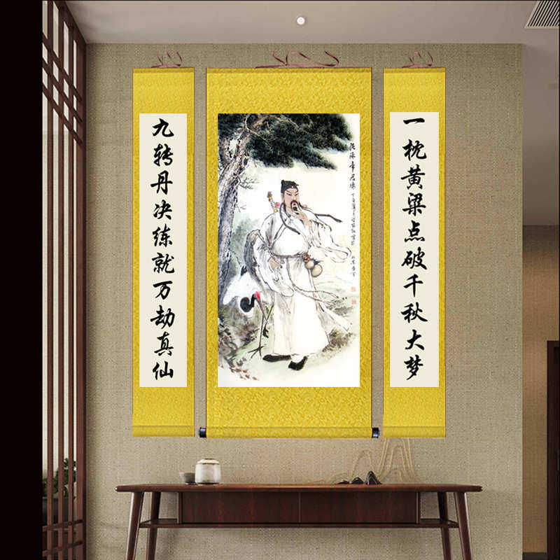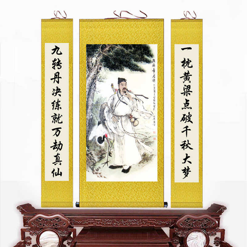 📚 纯阳子吕祖画像挂画纯阳祖师八仙之吕洞宾神像绢布卷轴画对联新款