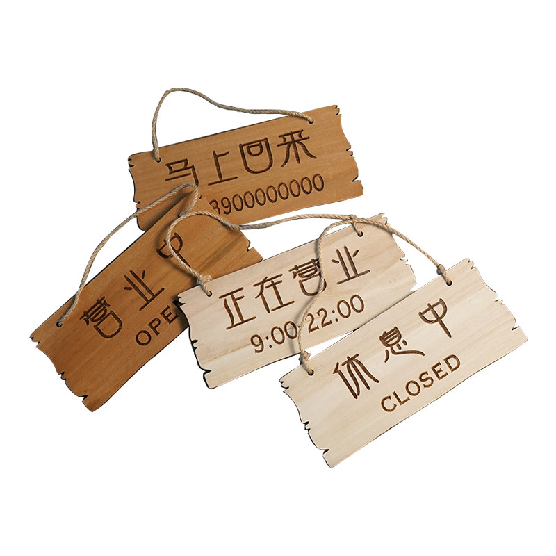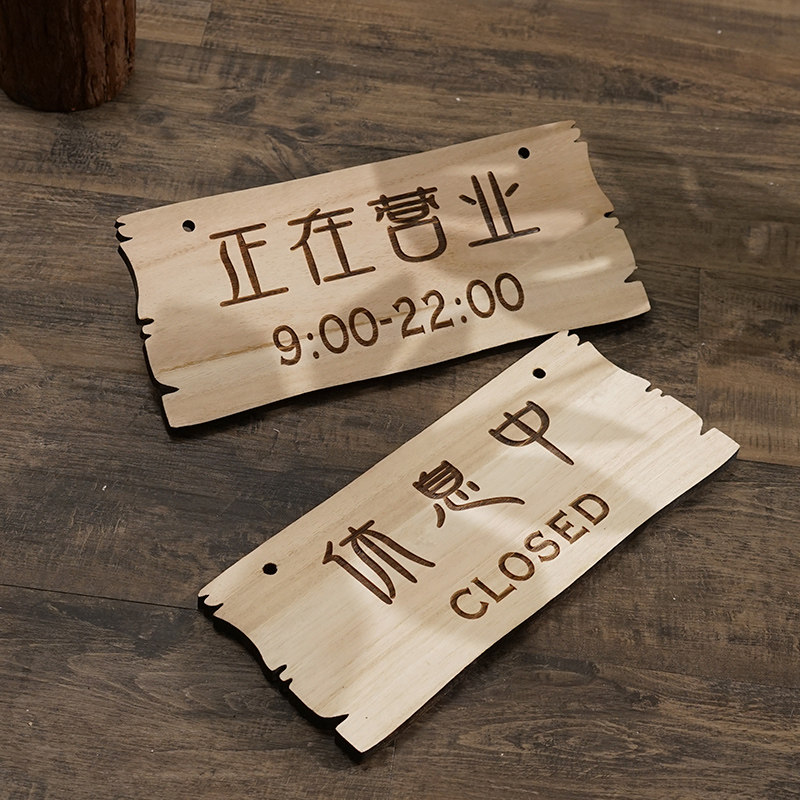 📚 复古店铺招牌营业中休息中挂牌双面创意中式木质门牌刻字木牌定制