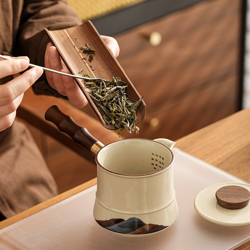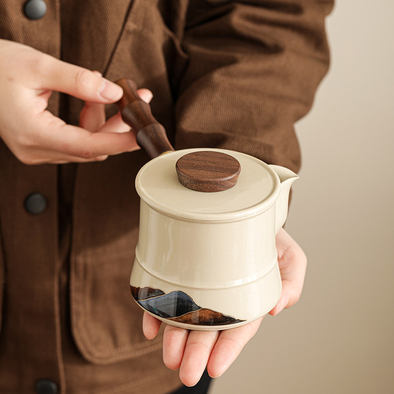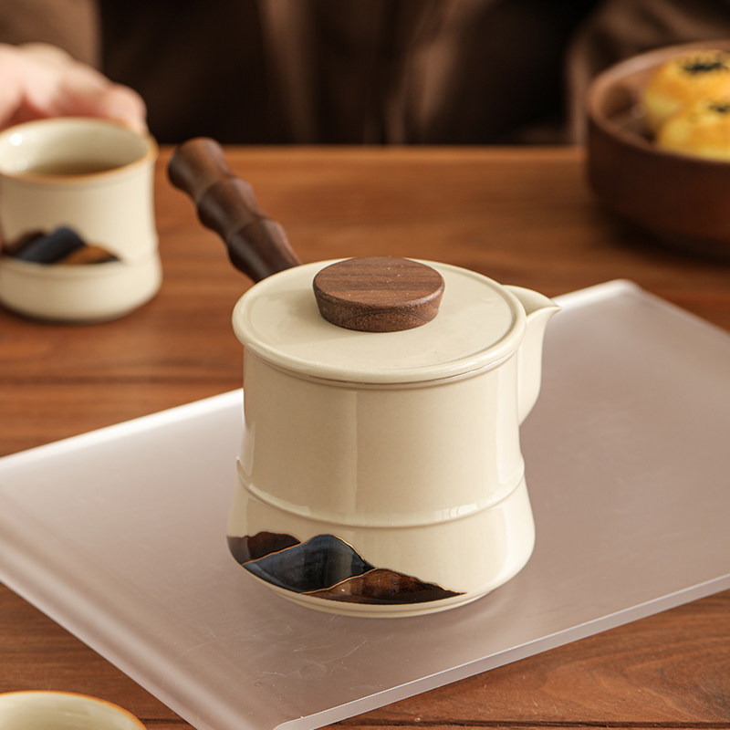 📚 草木灰山山而川侧把壶陶瓷茶壶家用陶瓷单壶不烫手简约泡茶中式壶