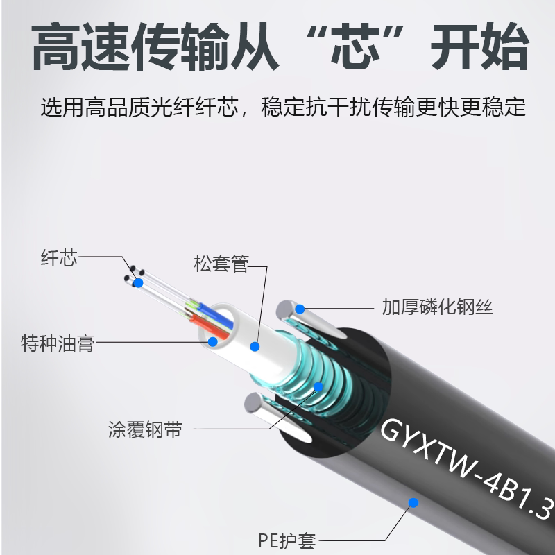 📚 烽易通 4芯光缆光纤线室外铠装光缆室外通信四芯光纤国标光缆 4/6/8/12芯中心束管式国标单模8.0外径光缆