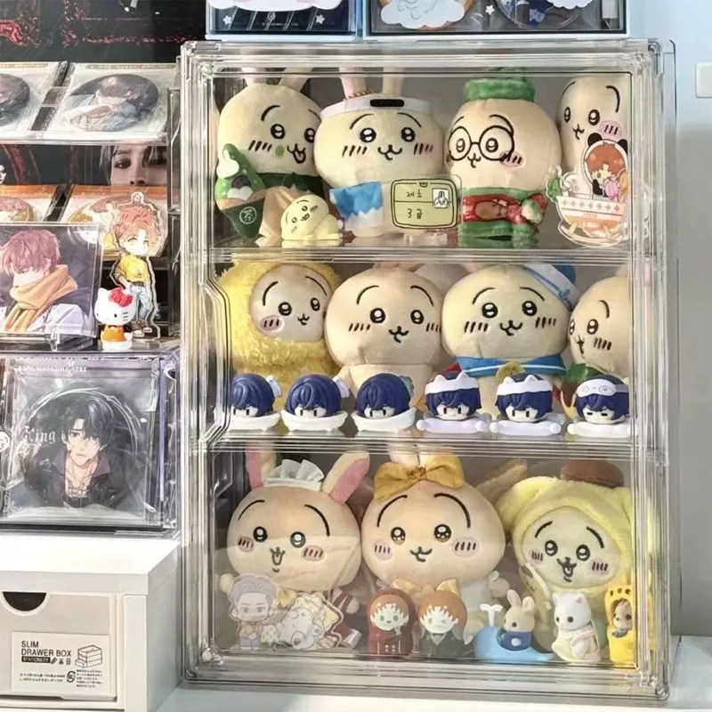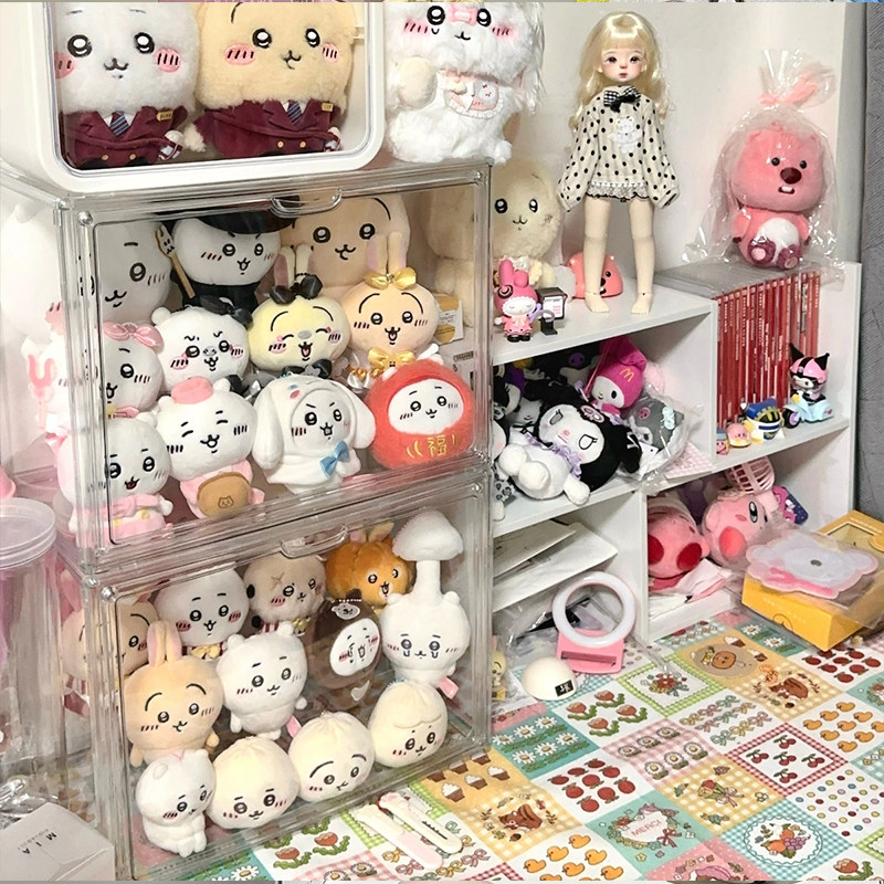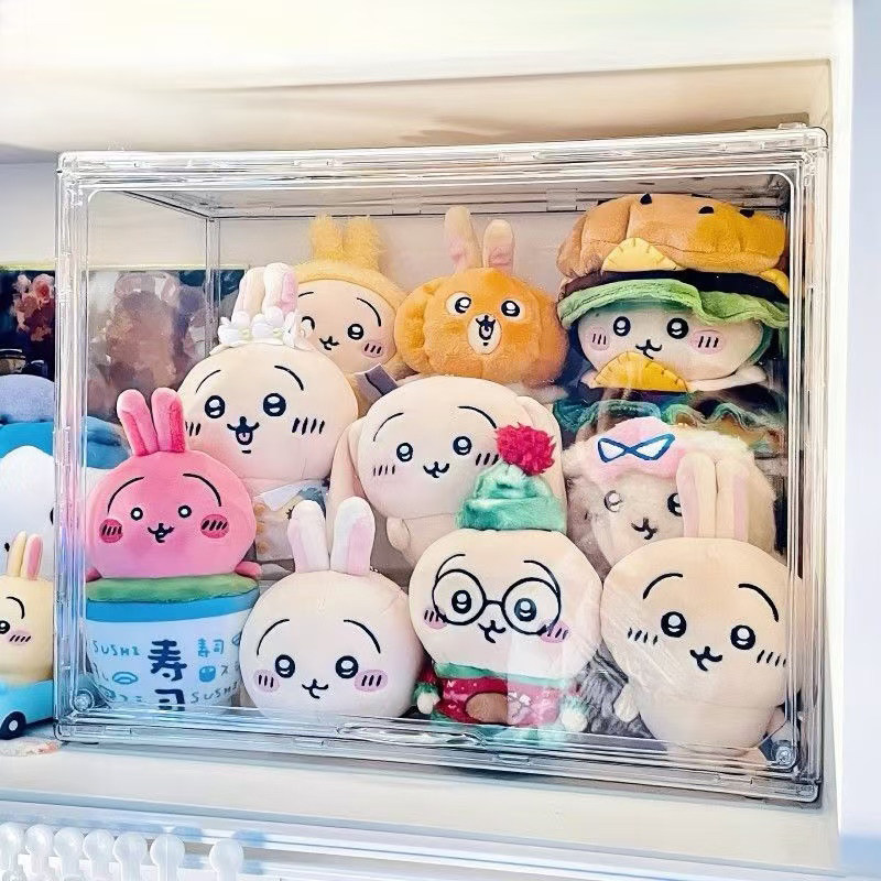 📚 毛绒玩偶亚克力透明娃娃收纳盒chiikawa公仔小八痛柜整理箱展示盒