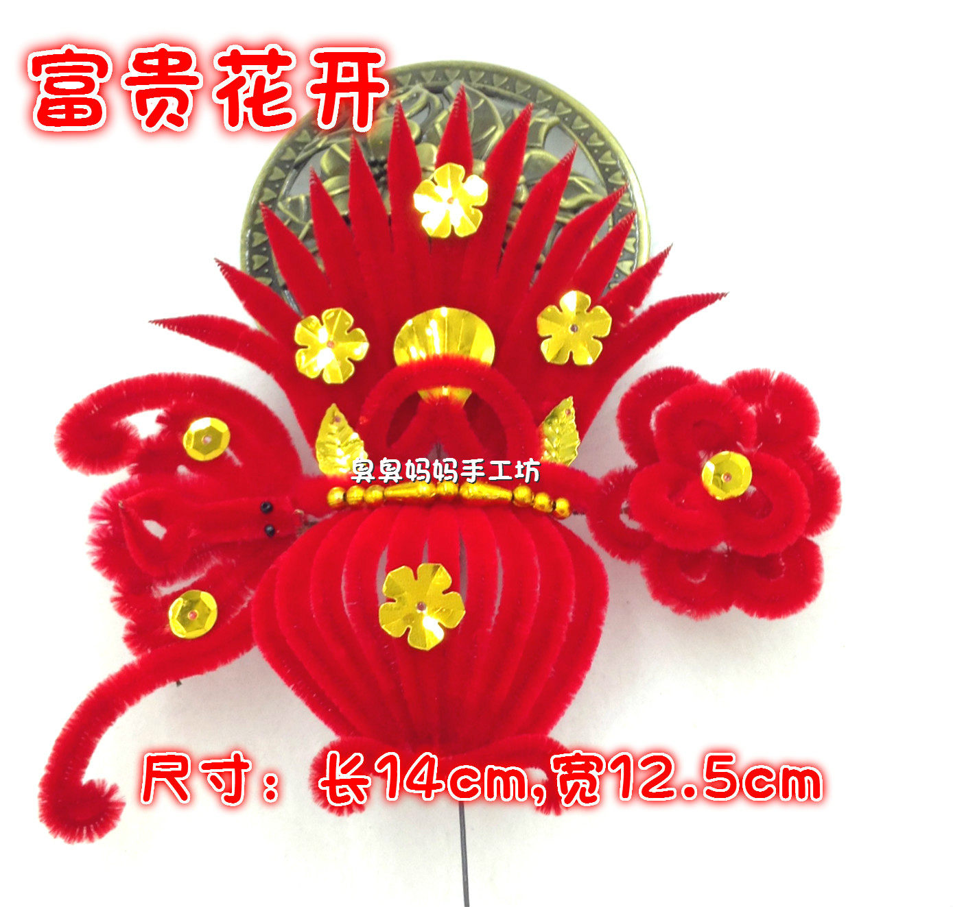 📚 2026年新款红绒花聚宝盆妈妈婆婆花过年头花天津满25元包邮