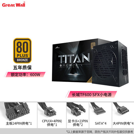 📚 长城SFX600W650W750W850W小电源额定850W全模组静音台式机SFX电源