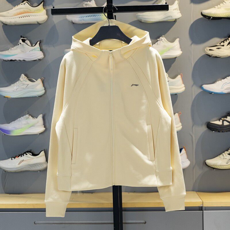 📚 李宁正品健身系列女子宽松透气加绒保暖连帽夹克外套AWDV944-1