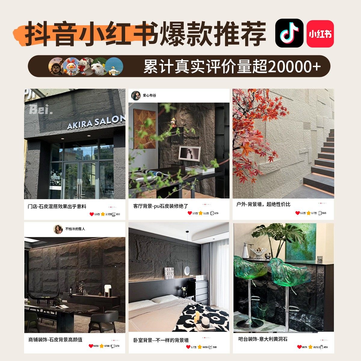 💥炫酷装饰,轻质PU石皮混搭设计背景墙,券后价20!💥