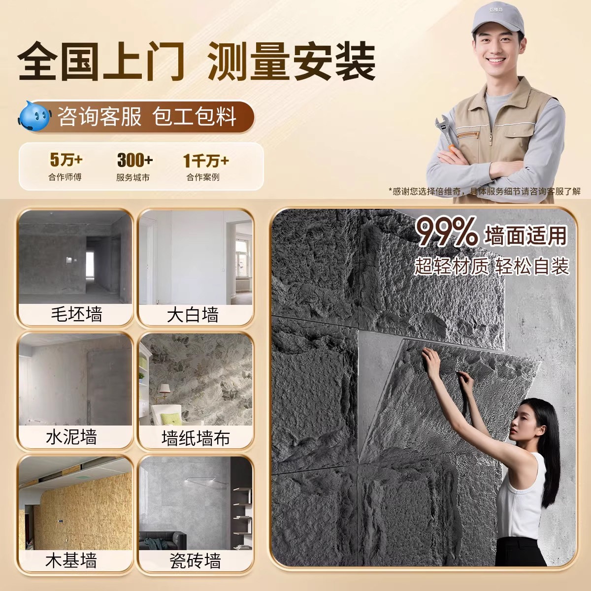 💡使用体验:我亲自体验了这款装饰板,真的是太惊艳了!它的轻质PU材质让整个墙面看起来非常舒适,而且不易受损。混搭设计更是让整个空间充满了层次感和个性。