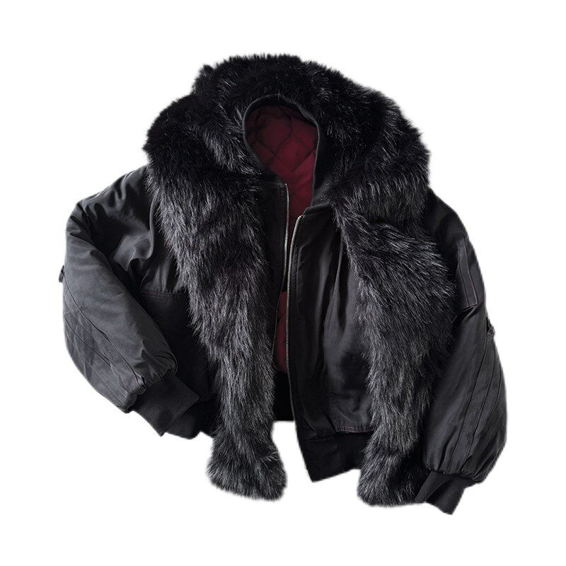 📚 no E mosen* 魇 十字棺 皮草围巾翻领可拆卸连帽街头MA1棉服夹克